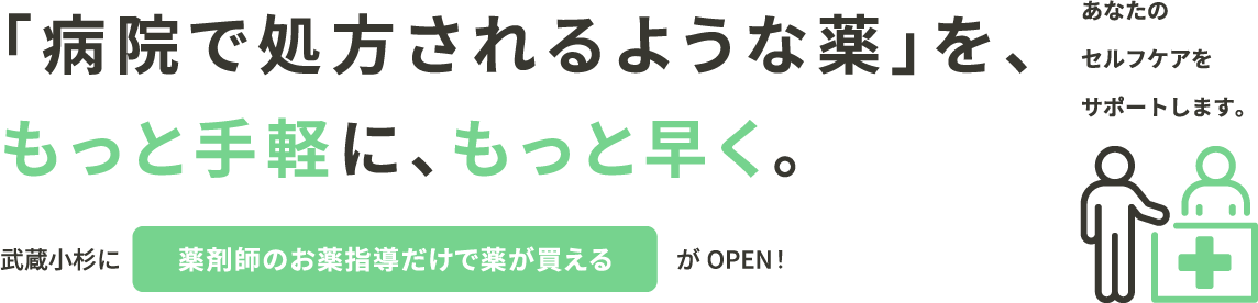 薬剤師がいるので、薬の効き目や副作用、飲み合わせのことも、わかるまで何度でも相談できます。市販の薬よりよく効く薬を、安心して選べて、買ったあともいつでも相談できます。